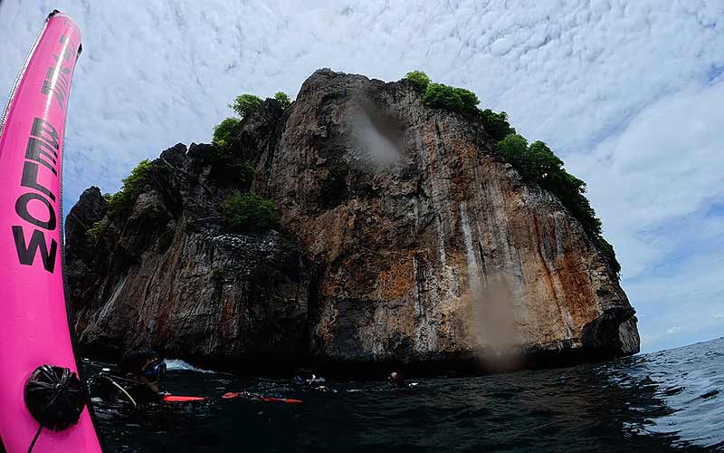 ボートのピックアップ待ちの間大迫力の島を見上げて、すごいねーって自然のすごさをひしひしと感じていました笑
