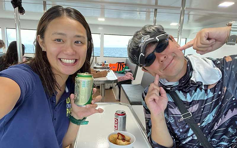 お天気よすぎてお客様も行き帰りずっと船の船首でくつろいでいました(^^)