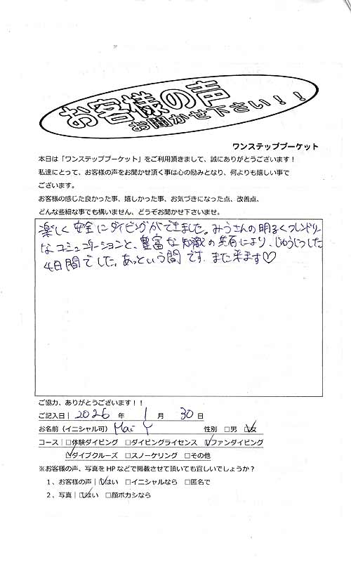 ・ご参加日|2026年1月26日ー30日|合計15ダイブ